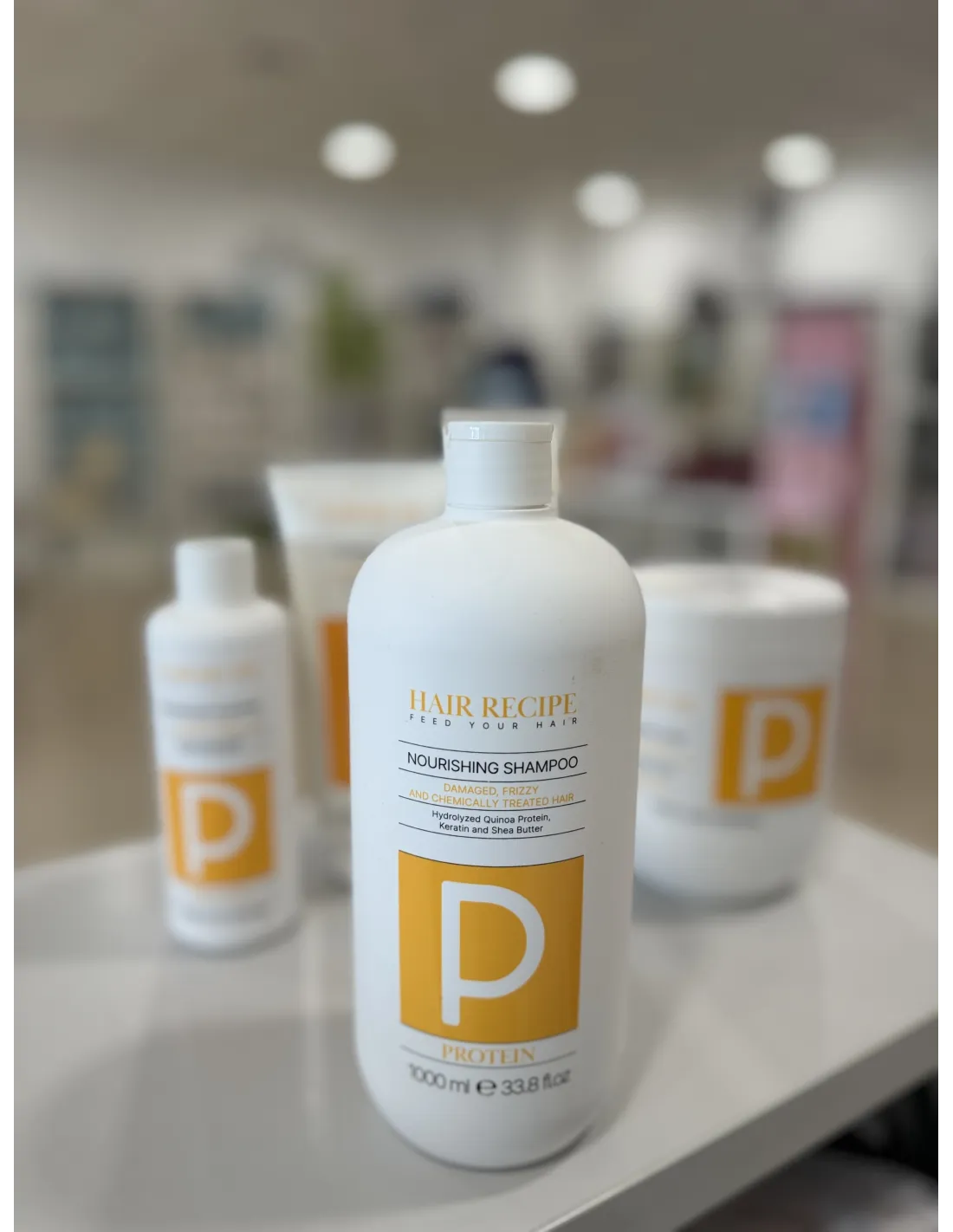 Champú de proteína de quinoa y queratina; y con manteca de karité que nutre y limpia en profundidad evitando el indeseado friz, ideal para cabellos secos y muy porosos.