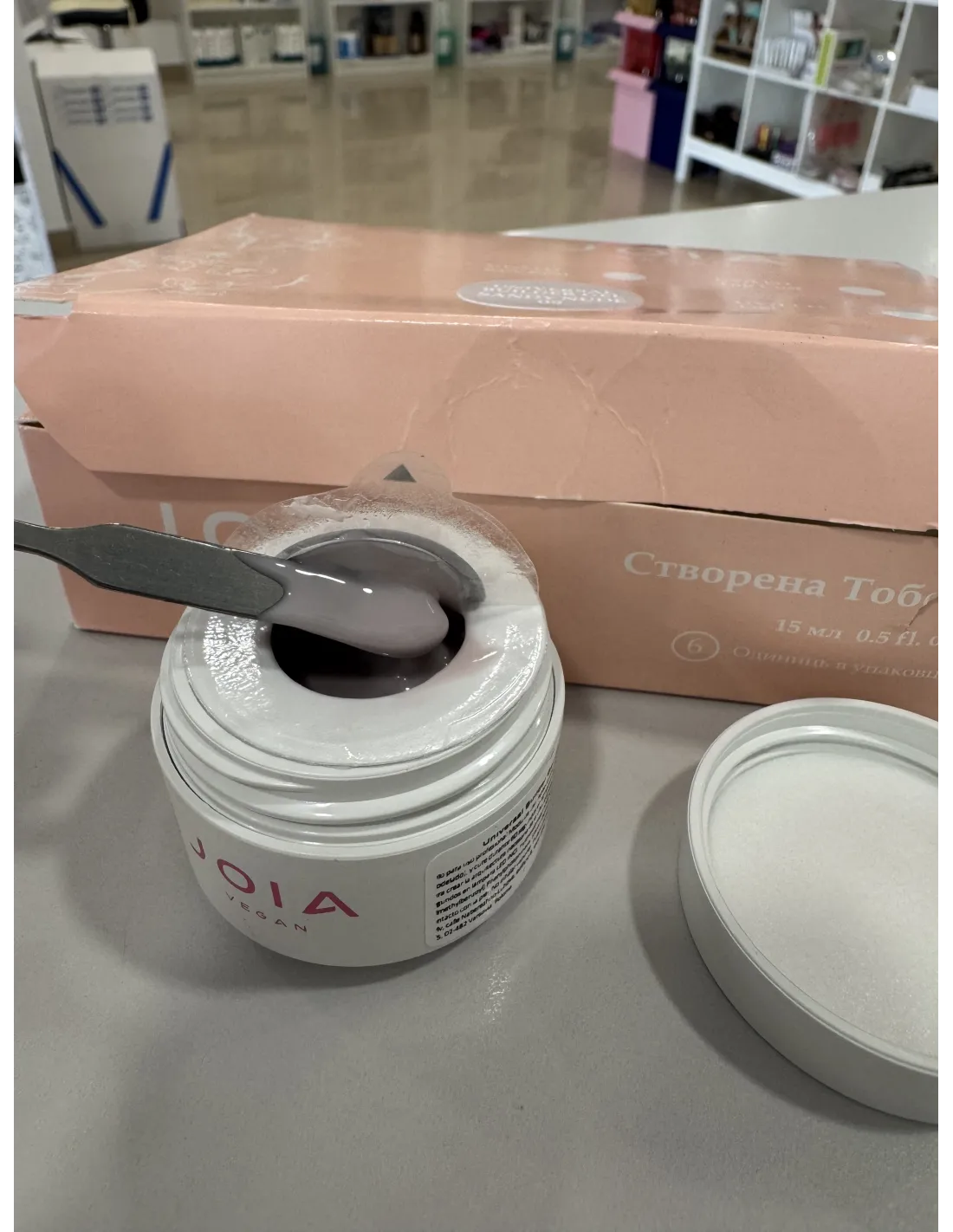 3. Aplicar una fina capa de Gel Constructor Universal JOIA Vegan, creando la forma y longitud deseada (1.5-2 cm en modelado). Curar durante 60 segundos en lámpara LED.