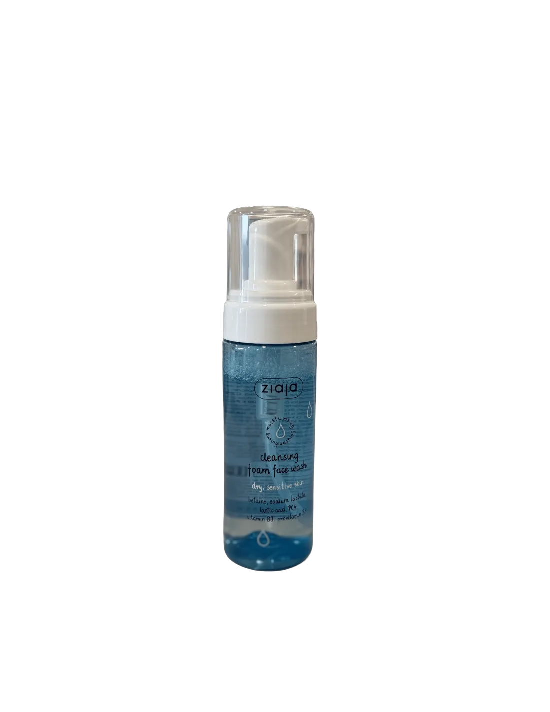 Limpiador facial en espuma para pieles secas y sensibles.