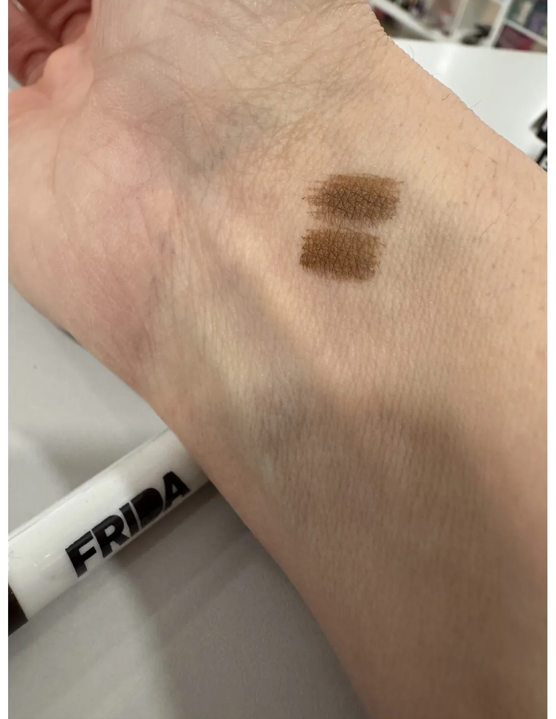 Lápiz de Cejas Líquido Frida 4 puntas. Dos colores disponibles, marrón oscuro y marrón claro. Decir que los dos tonos son muy similares y apenas se aprecia la diferencia. Quedan un tono oscuro medio muy adaptable a prácticamente todos los tipos de cejas.
