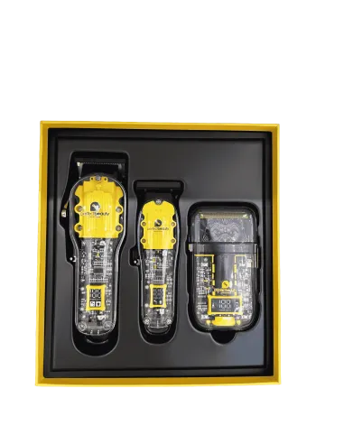 El Pack DG01 incluye Top Cut TC - DG 01 para cortes suaves y precisos, Top Cut Trimmer TCT - DG 01 de corte especial para detalles y acabados y Retro Razor - DG 01 para afeitar, rapar a cero, perfilar o realizar degradados. Todas disponen de función inalámbrica.